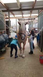 Es wurde dabei aber nicht nur fleißig geritten und voltigiert. Natürlich standen auch Pferdepflege und das Versorgen unserer Vierbeiner auf dem Plan.